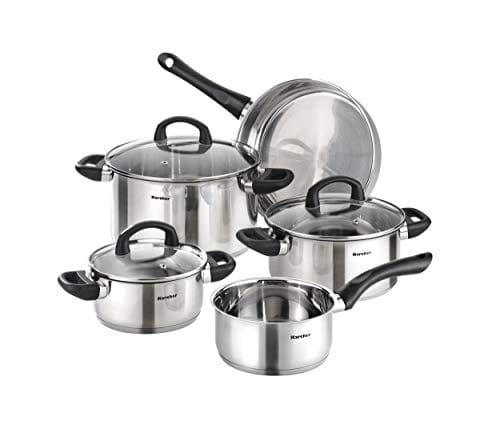 Karcher Mia Zestaw Naczyń Kuchennych Z Patelnią, Stal Nierdzewna, Srebrne, 5-Częściowy 3 Szklane Pokrywki