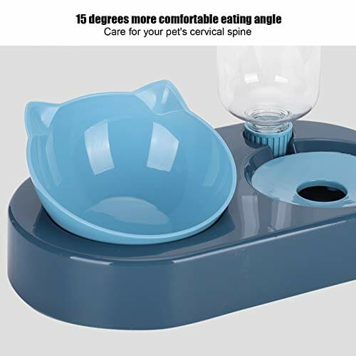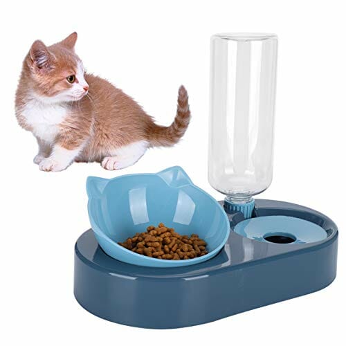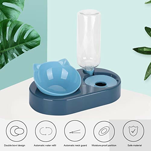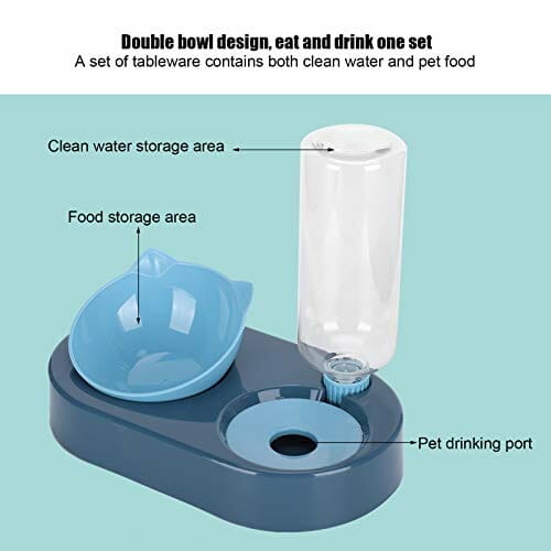 Cikonielf Miski na wodę grawitacyjną i żywność kot 2 w 1 automatyczny karmnik dla zwierząt podwójny regulowany przechylona woda i żywność zestaw misek podniesione miski dla kotów (niebieski)