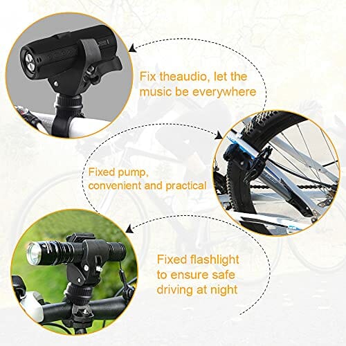 • Zestaw stojaków na oświetlenie rowerowe: W zestawie stojaka na światło rowerowe znajdują się dwa klipsy. Możesz ich używać na przemian lub przypiąć do innych części roweru, dzięki czemu możesz korzystać z latarki i cieszyć się muzyką w dowolnym miejscu i czasie.