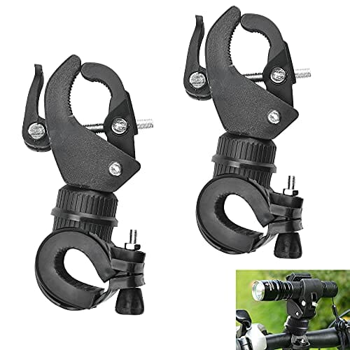 KBNIAN 2 szt. uchwyt na światło rowerowe, uniwersalny uchwyt rowerowy 360 stopni obrotowy uchwyt na latarkę, antypoślizgowy uchwyt na latarkę rowerową, mocowanie latarki MTB Torch Clamp Clip Mount akcesoria do oświetlenia LED