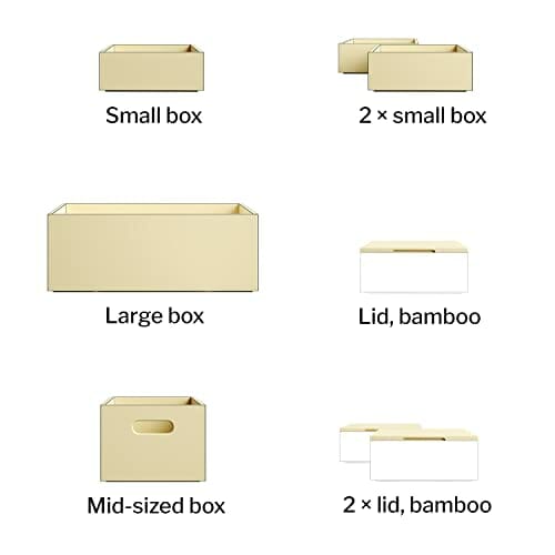 ✅ Odpowiednie skrzynki (poza: Odpowiednie skrzynki (poza zestawem): Bambusowa skrzynka KD Essentials (mała, średnia, duża; duża skrzynka wymaga dwóch pokryw)