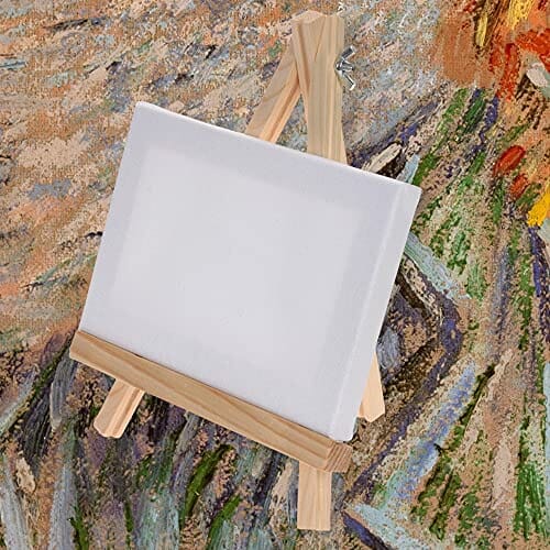 Małe płótno z blejtramem 18,5 x 12 cm ze sztalugą stołową wstępnie nac