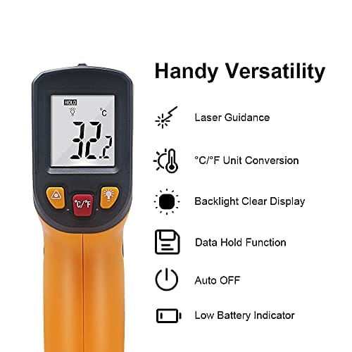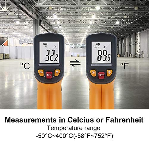 ✅ ►Pistolet do termometru: ►Pistolet do termometru na podczerwień wykorzystujący temperaturę od -50 do 400 ° C, odpowiedni do większości miejsc, takich jak grill, maszyna, samochód, gotowanie, mierzenie podgrzewania żywności lub codzienne użytkowanie. UWAGA: Ten termometr nie może być używany do pomiaru temperatury ciała.