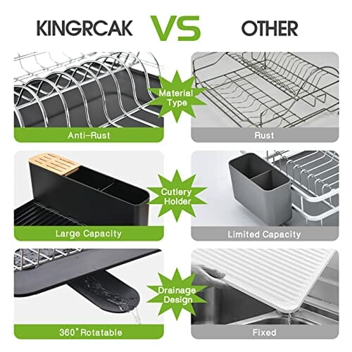 Kingrack Ociekacz do naczyń oferuje wiele korzyści dla Ciebie jako klienta. Po pierwsze, zapewnia wygodę i funkcjonalność, umożliwiając Ci skuteczne suszenie naczyń bez konieczności zajmowania dużej ilości miejsca na blacie kuchennym. Po drugie, jego trwała konstrukcja ze stali nierdzewnej gwarantuje długotrwałe użytkowanie. Po trzecie, obrotowa wylewka 360 stopni ułatwia odprowadzanie wody, co przyspiesza proces suszenia naczyń.