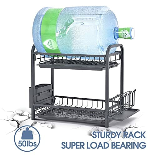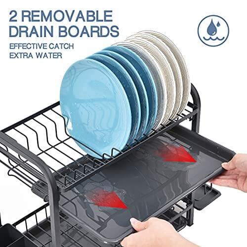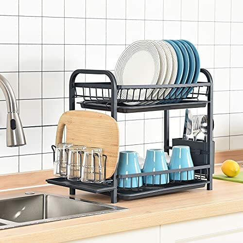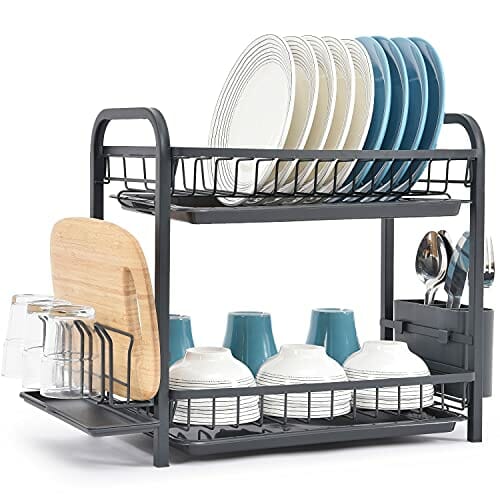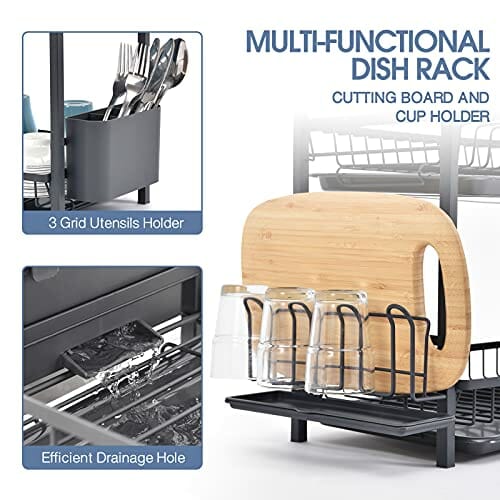 „Suszarka do naczyń Kingrack: 2-poziomowa, ociekacz z tacami, uchwytem na sztućce, kubek i deskę do krojenia”