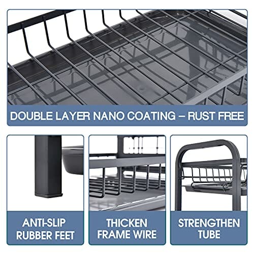 Duża powierzchnia suszarki Kingrack zapewnia wystarczającą przestrzeń do suszenia naczyń dla całej rodziny. Nie musisz już martwić się o brak miejsca na talerze, szklanki czy garnki. Dzięki dwupoziomowej konstrukcji, suszarka oferuje podwójną powierzchnię suszenia, co znacznie zwiększa jej pojemność.