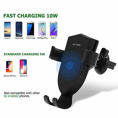 Klein Design Qi 10 W bezprzewodowa szybka ładowarka do samochodu. Ładowarka indukcyjna, kompatybilna ładowarka Qi do iPhone X, 8/8 Plus, Samsung Galax