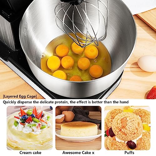 • * Duża pojemność 7 l: miska robota do wypieków o pojemności 7 litrów jest wykonana ze stali nierdzewnej z ergonomicznym uchwytem. Został zaprojektowany w taki sposób, że ma maksymalną pojemność ciasta 1,5 kg mąki, może pomieścić 17 jajek, aby wyprodukować 3 kg ciasta. Hak do ciasta zapewnia równomierne mieszanie ciasta, rakietka idealnie nadaje się do ciasta na chleb i mieszanek spożywczych, bicz nadaje się dobrze do jajek, kremów, musów itd.