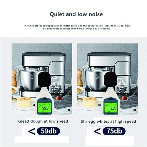 • * Cicha metalowa skrzynia biegów: główna część tego miksera do ciasta wykonana jest z aluminium i przetwarzana w procesie odlewania ciśnieniowego, który jest stabilny i trwały w przypadku pracy z antypoślizgową podstawą. Szczotkowana powierzchnia chroni urządzenie przed tłustymi odciskami palców.