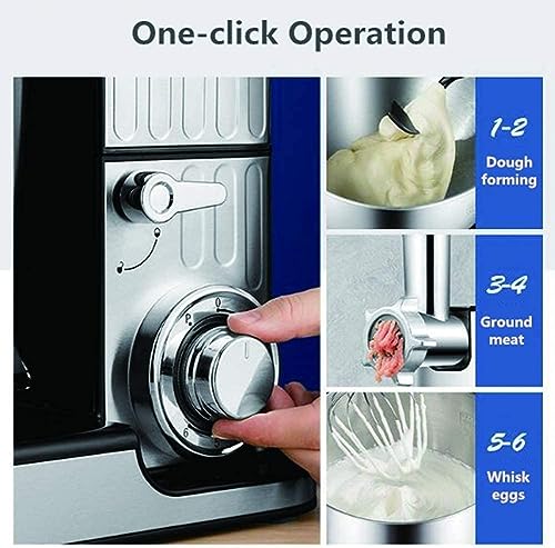 • * Doskonałe mieszanie: idealny pomocnik kuchenny dla każdego kucharza i piekarza. Oprócz klasycznego modułu mieszania i ugniatania, robot kuchenny jest również wyposażony w maszynkę do mięsa i dzbanek do miksowania oraz różne nasadki do mięsa i makaronu.
