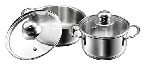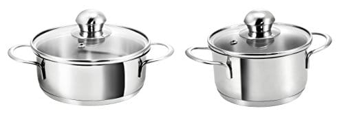 Kopf Zestaw mini garnków Parvus (stal nierdzewna, 2-częściowy, 12 + 14 cm, w zestawie szklana pokrywka, indukcja)