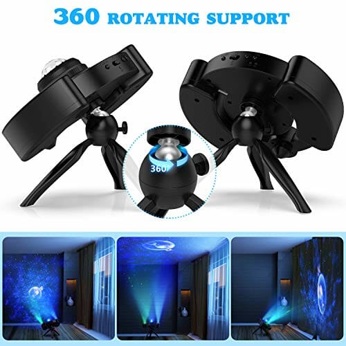 • 【Regulowany statyw o 360° i timer】 Lampka nocna z regulowanym statywem o 360° pomaga obracać światło pod dowolnym kątem. Projekcja może pokryć duży sufit o powierzchni do 130 m². Opcja timera jest bardziej energooszczędna (30, 60, 90 minut) lub można w każdej chwili działać (Wskazówka: w celu oszczędzania energii, projektor wyłącza się automatycznie po 4 godzinach pracy.)