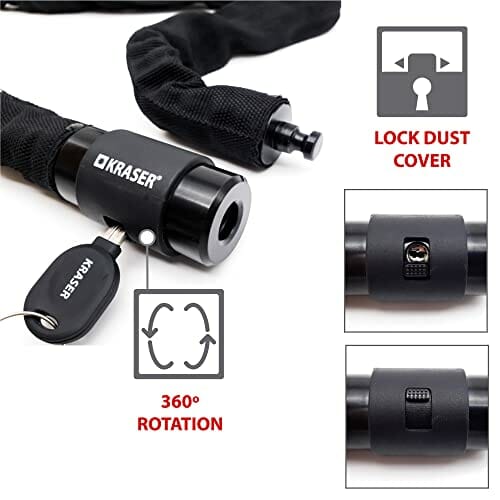 KRASER KR620 Kłódka Łańcuchowa z wodoodporną nasadką, Zamek łańcuchowy 6mm, łańcuch z obrotem 360 stopni, 100cm