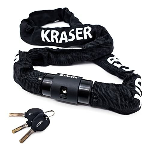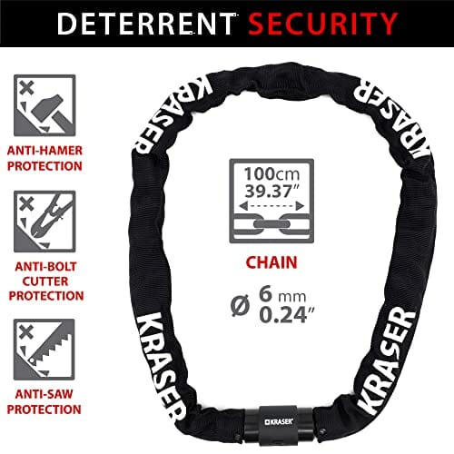 ✅ 🔐 WYSOKIE BEZPIECZEŃSTWO:: 🔐 WYSOKIE BEZPIECZEŃSTWO: Nasza kłódka KRASER KR620 wykonana jest z wysokowytrzymałego stalowego łańcuszka o grubości 6 mm i cylindra ze stopu cynku dla większego bezpieczeństwa kluczy dwustronnych, które są produktem trudnym do złamania.