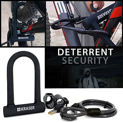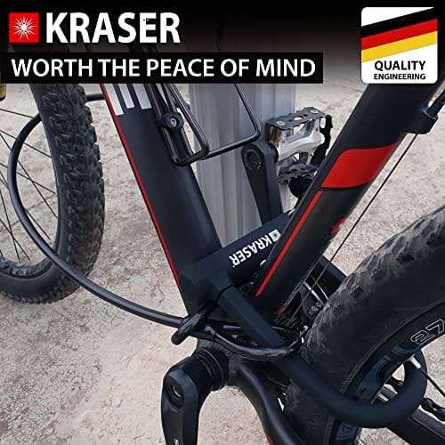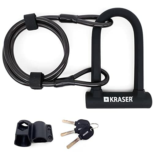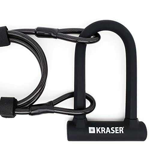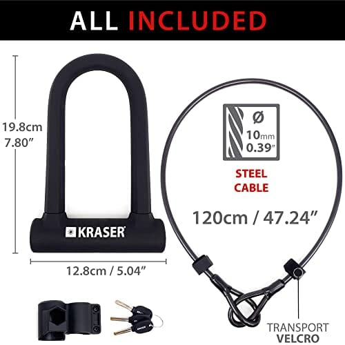 KRASER KR65145B Zapięcie Rowerowe Universalny Rower U-lock Blokada + Metalowa Elastyczne Kablowa 120cm + Uchwytem Montażowym