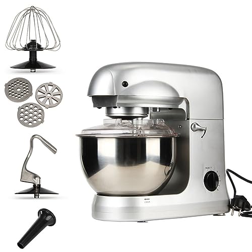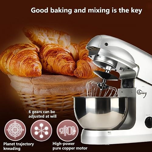 • ★ [BOL O DUŻEJ POJEMNOŚCI 5 L] Miska ze stali nierdzewnej może zaspokoić wszystkie Twoje potrzeby kuchenne. Mikser stojący jest łatwy w użyciu do robienia ciast, chlebów, ciastek, pieczenia, babeczek i gofrów, a oba uchwyty są wygodniejsze do trzymania.