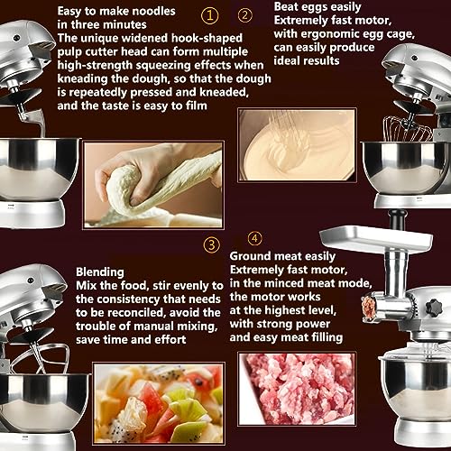 • ★ [AKCESORIA WIELOFUNKCYJNE] Z dostawą akcesoriów, w tym miską do mieszania, siatką do mielenia mięsa, wężem do napełniania kiełbasek, trzepaczką do jajek w kształcie litery C, haczykiem do ciasta w kształcie C, płaskim mikserem w kształcie litery Y, ten cudowny mikser podstawowy działa wielofunkcyjnie do mieszania, bicia, emulgowania. ugniatanie, ubij jajka lub śmietanę.