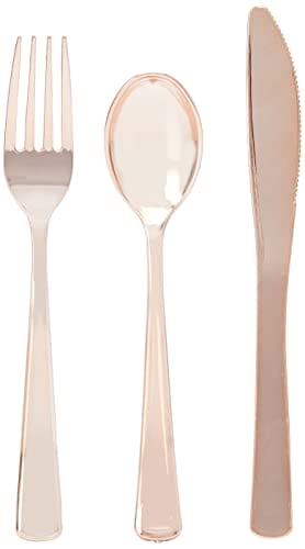 Sztućce z tworzywa sztucznego dla 6 osób – różowe złoto –