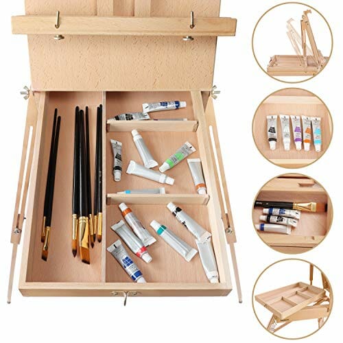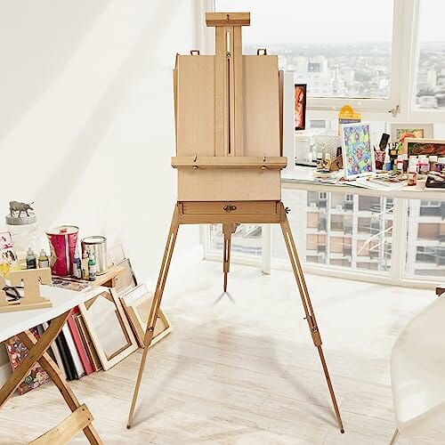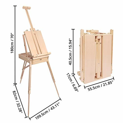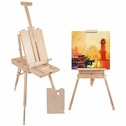 Kurtzy Duża Drewniana Sztaluga we Francuskim Stylu – Regulowana do 180 cm Wysokości – Składana Trójnożna Sztaluga z Szufladą i Paletą Malarską
