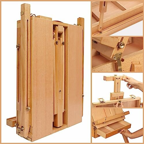 Kurtzy Duża Drewniana Sztaluga we Francuskim Stylu oraz Pudełko na Szkice to idealne narzędzia dla artystów, którzy pragną tworzyć swoje arcydzieła w profesjonalny i stylowy sposób. Ta regulowana sztaluga o wysokości do 180 cm zapewnia stabilność i wygodę podczas malowania, a jednocześnie dodaje elegancji do Twojego pracowni.