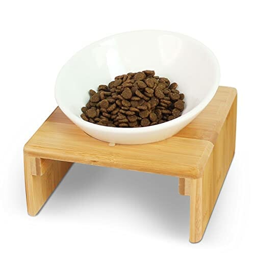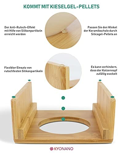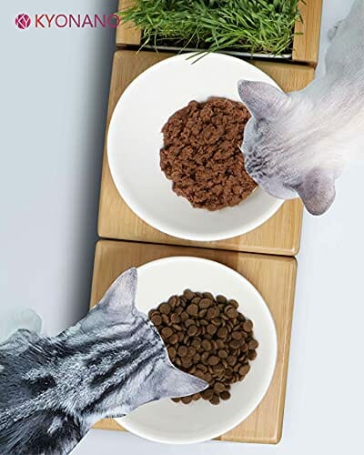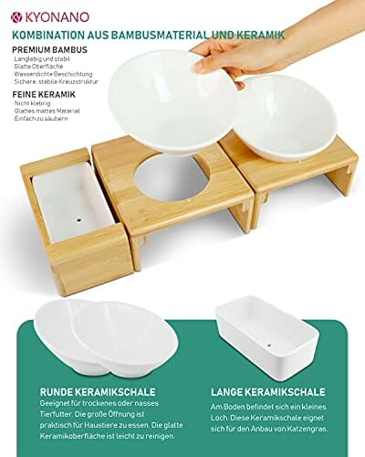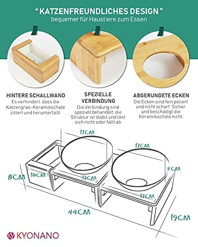 KYONANO Miska dla kotów, ceramiczna miska na karmę dla kotów, miska dla kota podwyższona z bambusową ramą, stacja dokarmiania dla kotów, miska do karmienia dla psów i kotów