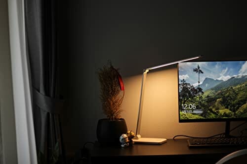 Lacmisc Lampka biurkowa LED to idealne rozwiązanie dla osób, które szukają wygodnego i funkcjonalnego oświetlenia. Lampka posiada przyciemnianie, dzięki czemu możesz dostosować jasność do swoich potrzeb. Wybierz spośród 5 kolorów i 10 poziomów jasności, aby stworzyć idealne środowisko do pracy lub relaksu. Lampka jest wyposażona w dotykowy panel sterowania, dzięki czemu możesz łatwo i szybko zmieniać ustawienia. Złącze USB pozwala na łatwe ładowanie urządzeń mobilnych. 6 W mocy pozwala na wystarczające oświetlenie, a funkcja pamięci umożliwia zapamiętanie ustawień. Lacmisc Lampka biurkowa LED to wygodne i funkcjonalne oświetlenie, które zapewni Ci wygodę i komfort w każdym miejscu.