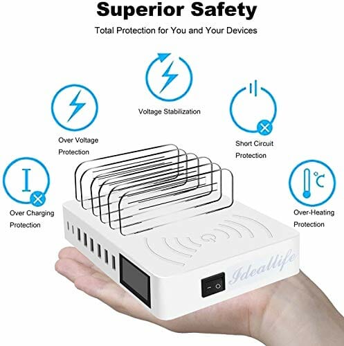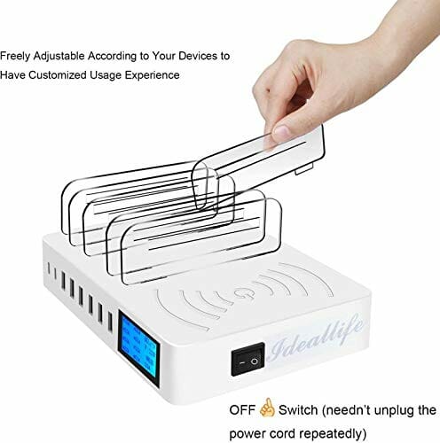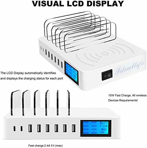 ideallife Wyświetlacz ciekłokrystaliczny, bezprzewodowa, stacja ładująca do wielu urządzeń, bezprzewodowa ładowarka 8 portów USB, stacja ładująca do telefonów komórkowych, tabletów z bezprzewodową ładowarką indukcyjną