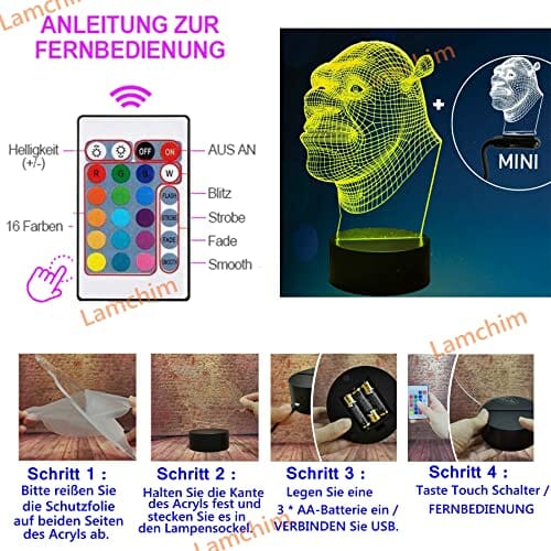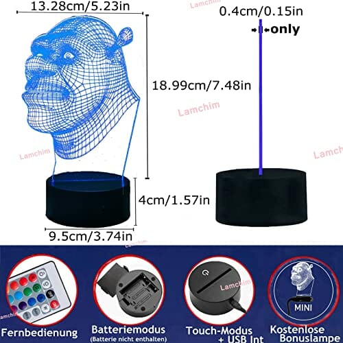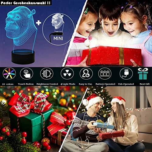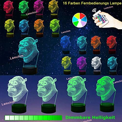 Lamchim Shrek Figurki – Shrek 2 filmy, iluzja 3D LED na zawsze po lampce nocnej, 7 zmieniających się kolorów, do sypialni, dekoracja dla dzieci, na Boże Narodzenie, Święto Dziękczynienia, prezent