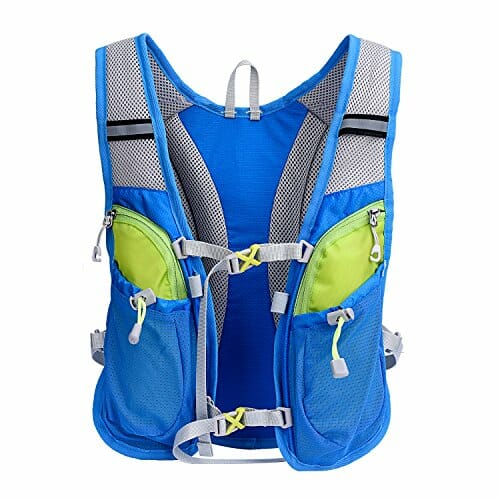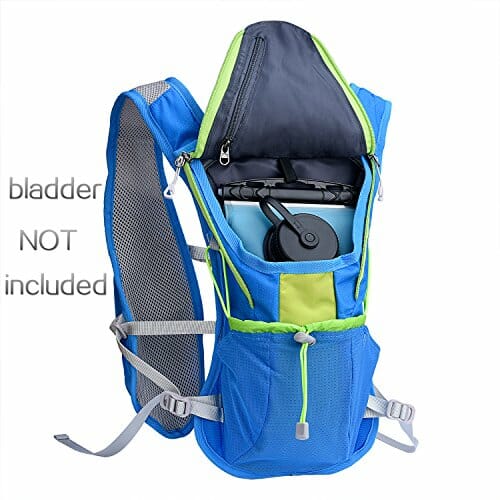 • Łącznie 7 kieszeni: Jedna główna komora na pęcherz 2 l (nie wchodzi w zakres dostawy). Tylna dolna kieszeń z siatki stretch-mesh z elastycznymi sznurkami bungee na żywność itp., wewnętrzna kieszeń na zamek błyskawiczny na klapce na karty i klucze, 2 odporne na pot kieszenie na suwak, na szelkach na ramionach umożliwiają łatwy dostęp do gadżetów i telefonu (pasuje do telefonów do 5,5 cala), 2 kieszenie z elastycznej siatki z przodu zapewniają wygodę składników odżywczych i dodatkowe butelki z wodą.