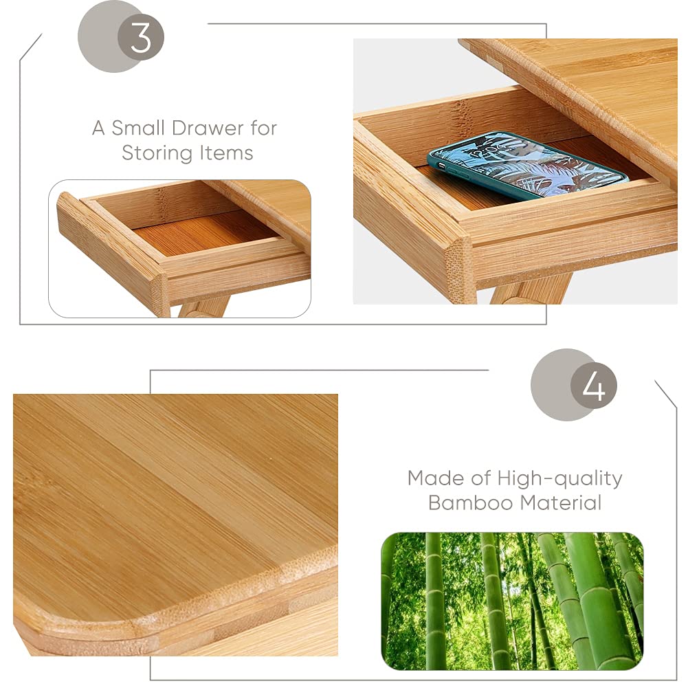 4. Uniwersalność: Ten składany stolik taca śniadaniowa jest idealnym rozwiązaniem dla osób pracujących zdalnie, studentów, osób z ograniczeniami ruchowymi czy po prostu dla tych, którzy cenią sobie wygodę i funkcjonalność w codziennym życiu. Może być używany nie tylko w łóżku, ale także na kanapie, podczas podróży czy w ogrodzie.