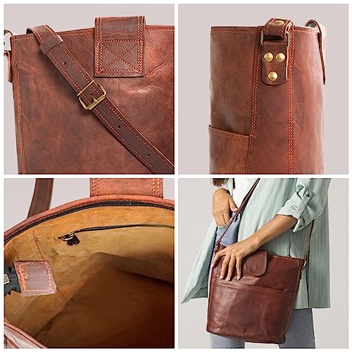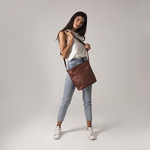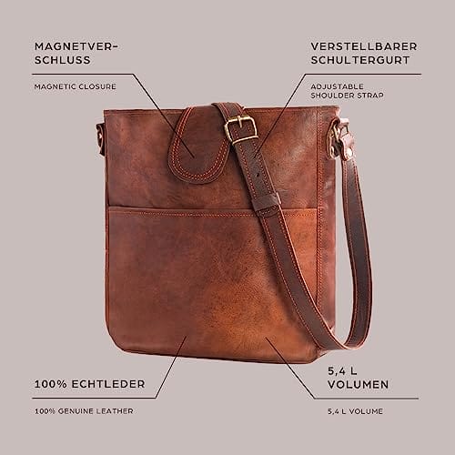 LEABAGS Skórzana torebka damska, wysokiej jakości skóra naturalna, damska torba na ramię, do pracy, na uczelnię, do szkoły, na czas wolny, rozmiar L (
