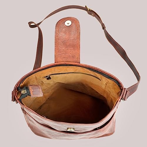LEABAGS Skórzana torebka damska, wysokiej jakości skóra naturalna, damska torba na ramię, do pracy, na uczelnię, do szkoły, na czas wolny, rozmiar L (31 x 29 x 6 cm), styl vintage, koniak, Koniak