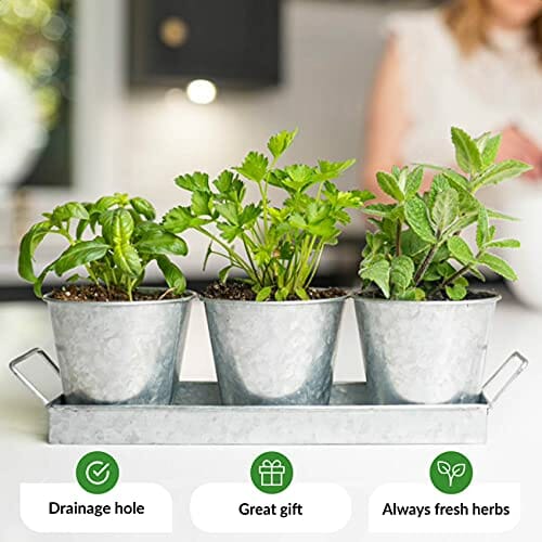 Doniczka do ziół do wewnątrz, hoduj świeże zioła w domu, ocynkowane doniczki na zioła, do kuchni i parapetu, kuchni, ogrodu ziołowego, doniczki ogrodowe do uprawy bazylii, mięty, pietruszki i wielu innych