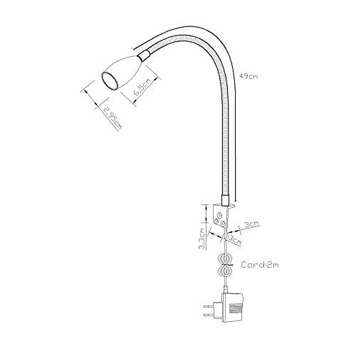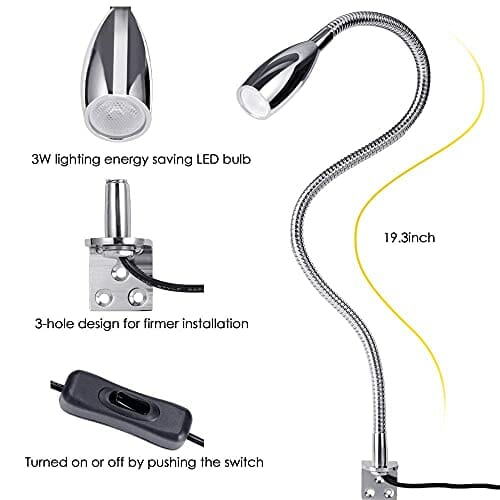 Lampka do czytania LED,lampka nocna Oświetlenie naścienne Półka na biurko Oświetlenie wyświetlacza 200lm/3000k/3w/110-240 V AC, kąt świecenia: 30 °, długość gęsiej szyi:49cm,długość przewodu zasilając