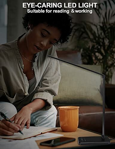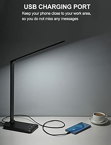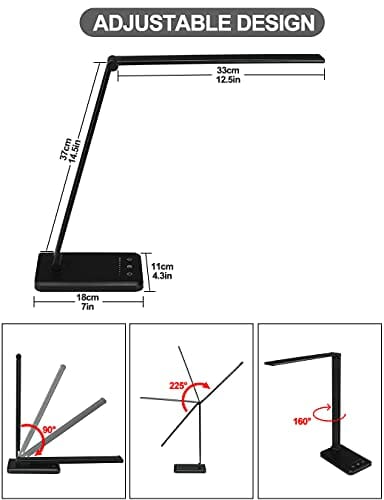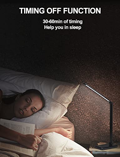 Lampa Biurkowa LED, Przyjazna dla Oczu Regulowana Lampa Stołowa, 5 Trybów Oświetlenia, 10 Poziomów Jasności, Sterowanie Dotykowe, Składana Lampa Biurkowa z Portem Ladowania USB do Domowego Biura, 1 Godzina Automatyczny Timer, Czarna