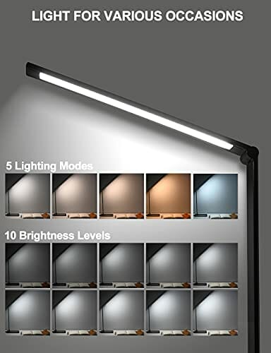 • 【Dotykowa lampa stołowa z 50 spersonalizowanymi oświetleniem】 Lampa biurkowa LED ma 5 trybów kolorów, każdy z 10 poziomami jasności, łącznie 50 trybów świecenia, możesz użyć przełącznika dotykowego, aby swobodnie dostosować oświetlenie wymagane do pracy, nauki i relaksu.