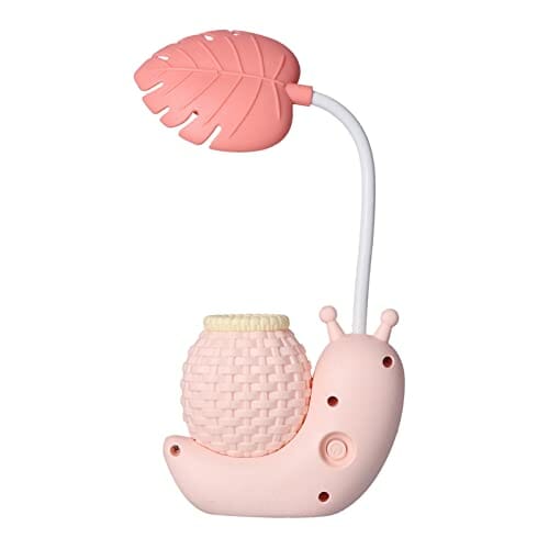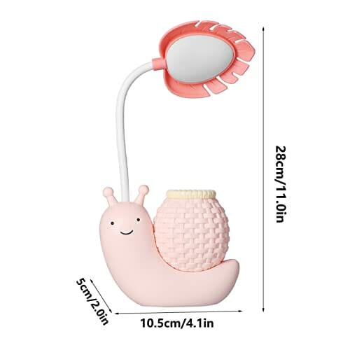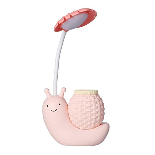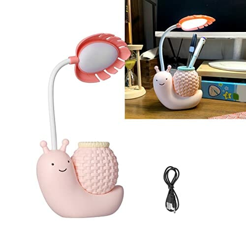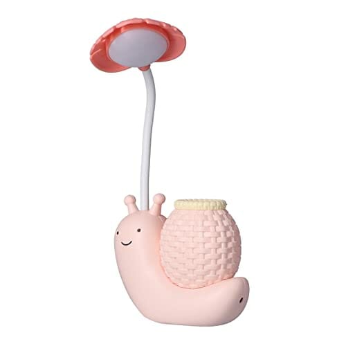 Lampa Biurkowa LED z Uchwytem na Długopis Cartoon Zwierząt Ślimak Lampa Stołowa Wielofunkcyjna Ładowanie USB Śliczne Lampka na Biurko Gooseneck dla Studentów Dzieci Ciepłe Białe(różowy)