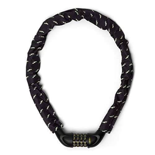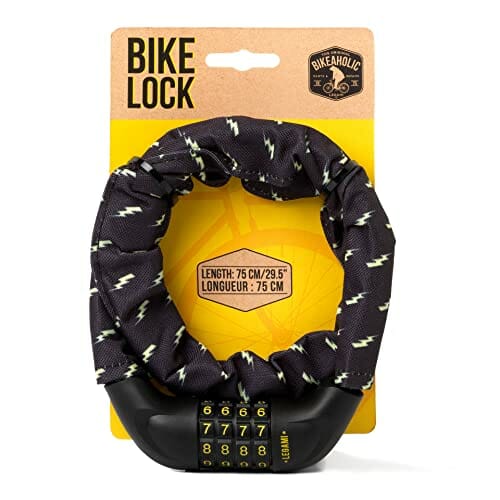 Krawaty – Kłódka z kombinacją, blokada rowerowa, L 75 cm, Ø 1,4 cm, motyw lampy błyskowej, odporny na wodę i cięcie, konfigurowalne połączenie
