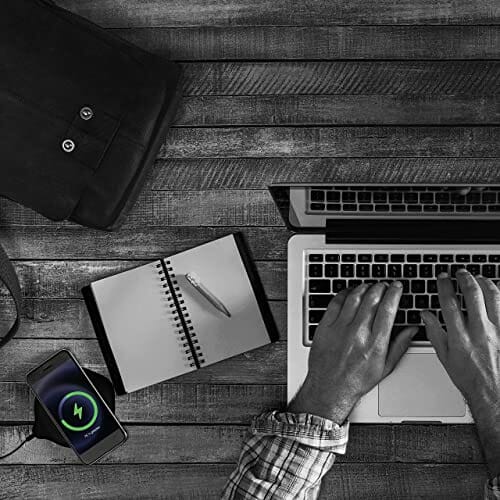 【Funkcja stojąca „2: 【Funkcja stojąca „2 w 1” z diodowym wskaźnikiem stanu naładowania】 W pozycji pionowej lub płaskiej. Z 4 antypoślizgowe stopy, ultra-smukły Qi ładowarka może również pozostać stabilny w płaskim miejscu. Dioda LED stacji bezprzewodowej wskazuje stan naładowania akumulatora i świeci się w trybie ładowa