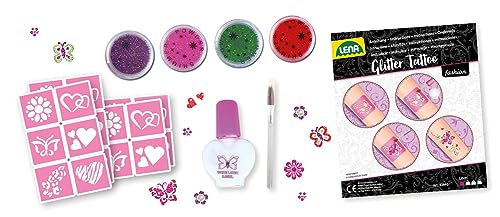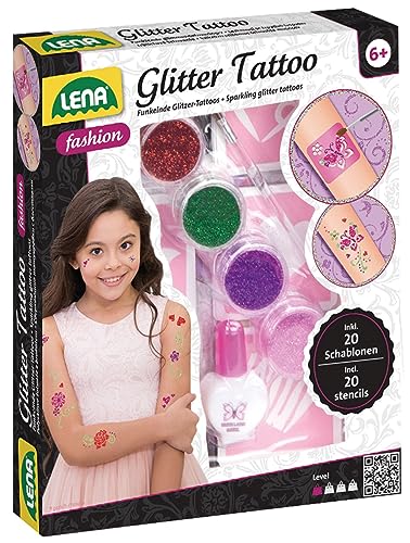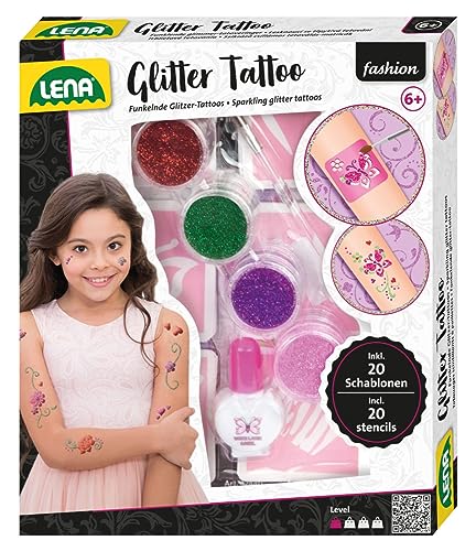✅ Lena Zestaw metalicznych: Lena Zestaw metalicznych tatuaży z 4 błyszczącymi kolorami, pędzlem, 10 szablonami i lateksem dla dziewczynek od 6 roku życia, który sprawi wiele radości przy ładnym