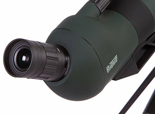 • Płynna regulacja powiększenia w zakresie od 25 do 75 razy umożliwia badanie skupisk ptaków lub zwierząt przy niewielkich powiększeniach oraz szczegółowe obserwowanie krajobrazu przy dużych powiększeniach
