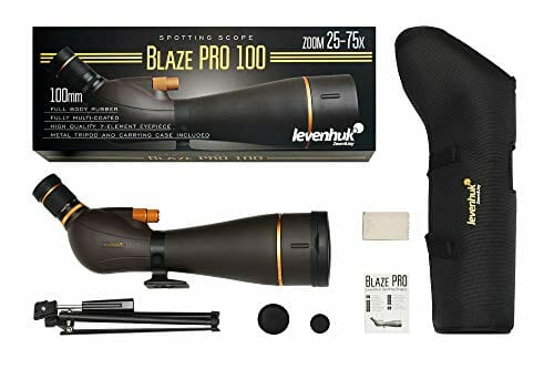 Levenhuk Blaze PRO 100 mm 25-75x Luneta Wodoszczelna, Wypełniona Azotem i Odporna na Zaparowanie, o Dużej Mocy i Dużej Aperturze, z Okularem Zmiennoogniskowym, Statywem i Torbą