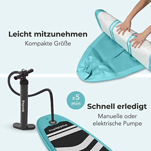 • ✅ NOŚNOŚĆ 135 KG – Ta deska do pływania SUP nadmuchiwana z łatwością uniesie do 135KG bez utraty stabilności. Doskonała, jeśli chcesz zabrać ze sobą dziecko lub psa na wiosłującą wycieczkę! Zawsze pamiętaj o odpowiednich środkach bezpieczeństwa.