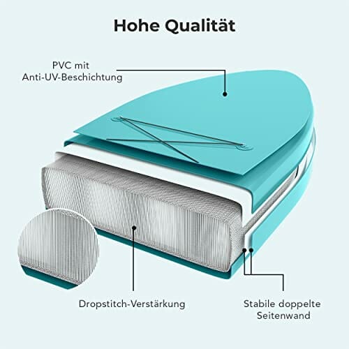 • ✅ ZAAWANSOWANA TECHNOLOGIA BUDOWY – Deska do paddleboardingu zbudowana jest z wytrzymałych warstw PCV z ultra lekkim rdzeniem typu “drop-stich” dla większej wytrzymałości na nacisk i zerwanie. Rezultatem jest stabilne i wygodne uprawianie paddleboardingu.