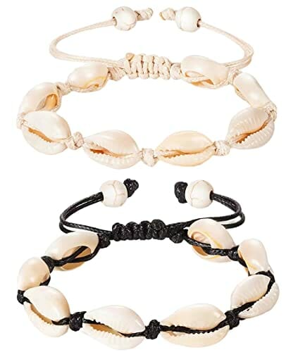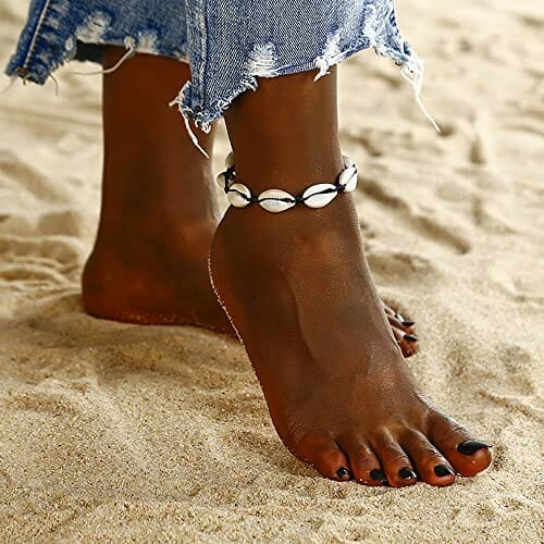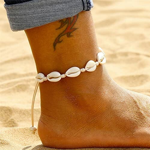 2 sztuki łańcuszków na kostkę z muszelkami, naturalne muszle Kauri, łańcuszek na stopę, ręcznie wykonany, łańcuszek na stopę, bransoletka regulowana,