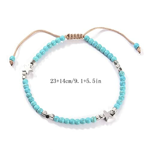 2 sztuki turkusowych łańcuszków na stopę w stylu boho, ręcznie robione perły, bransoletka na kostkę, regulowana na lato, hawajskie plaże, biżuteria na
