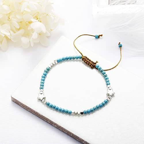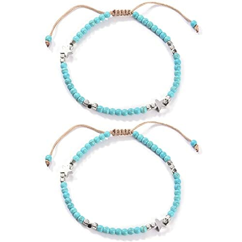 2 sztuki turkusowych łańcuszków na stopę w stylu boho, ręcznie robione perły, bransoletka na kostkę, regulowana na lato, hawajskie plaże, biżuteria na stopę dla kobiet i dziewcząt