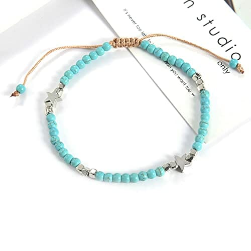 2 sztuki turkusowych łańcuszków na stopę w stylu boho, ręcznie robione
