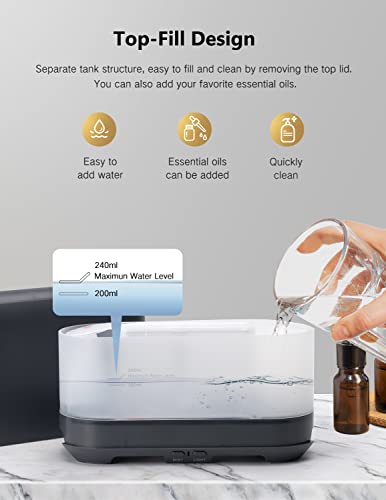 Jednym z najważniejszych atutów tego dyfuzora jest jego zdolność do rozprzestrzeniania zapachów olejków eterycznych. Dzięki ultradźwiękom, które rozpraszają cząsteczki olejków w mikroskopijne kropelki, zapachy wypełniają pomieszczenie, tworząc przyjemną i relaksującą atmosferę. Możesz wybrać spośród różnych olejków eterycznych, aby dopasować zapach do swoich preferencji i potrzeb.