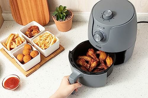 Napisz pierwszą opinię o „Linsar Heißluftfritteuse 1.8L, Timer, Temperatur wählbar, Warmhalten, Mini, klein, ölfrei, energiesparender & schneller als herkömmliche Öfen, 1200 Watt (Grau)”